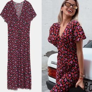 Blogger favorite! A-line with a V-neckline & short sleeves. Featuring a seam at the chest with gathering & invisible side zipper.