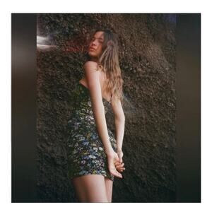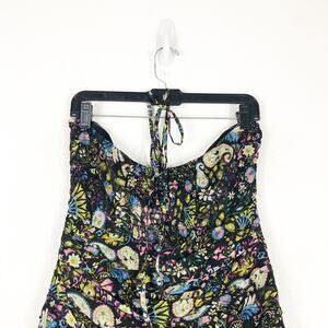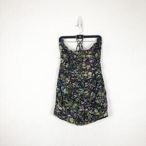 Zara Floral Mini Dress Large Ruched Bodycon Halter Sweetheart Paisley Print