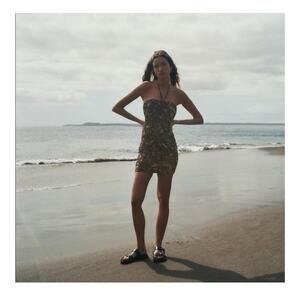 NWT Zara Floral Mini Dress Large Ruched Bodycon Halter Paisley Print Tie Neck