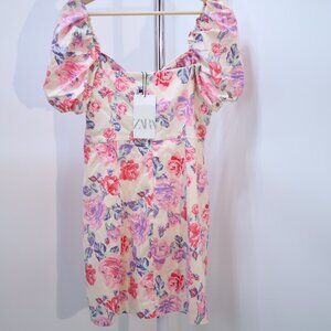 Zara Floral Off-Shoulder Puff Sleeve Dress, Size Large NWT