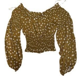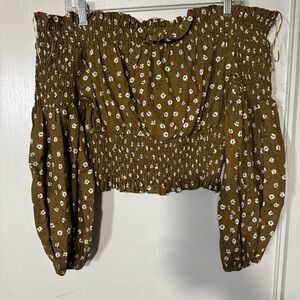 Zara Floral Off-Shoulder Top in Olive Green XL NWT