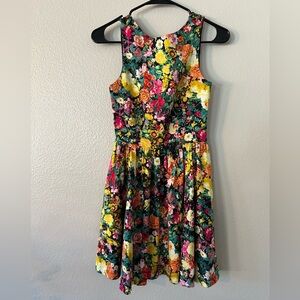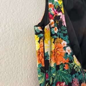 Vibrant floral backless dress by Zara. Features a mix of colors with a sleeveless design. Perfect for summer outings.