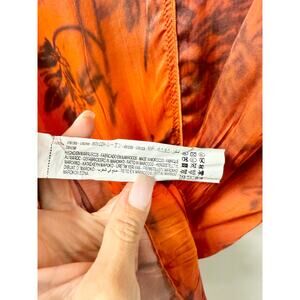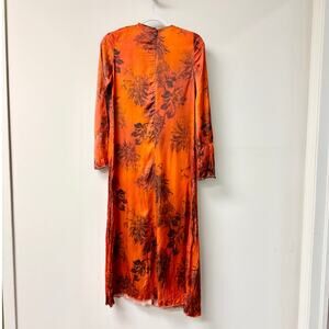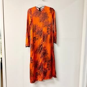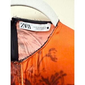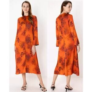 Zara Floral Print 3/4 Sleeve Wrinkle A-line Midi Dress Orange Women's Size XS