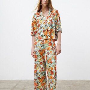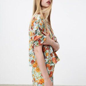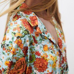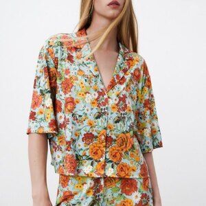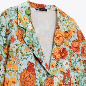 Zara Floral Print Button-Front Retro Boho Short Sleeve Top (NWT)