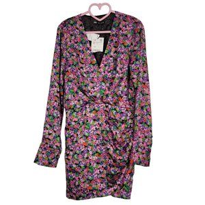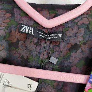 Zara Floral Print Dress Ditsy Multicolor V Neck Wrap Mini Size Small Womens