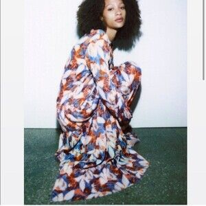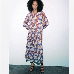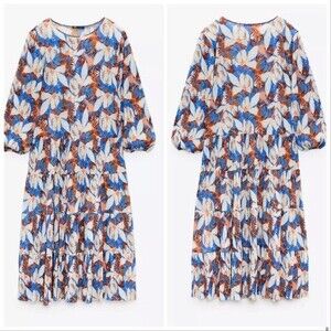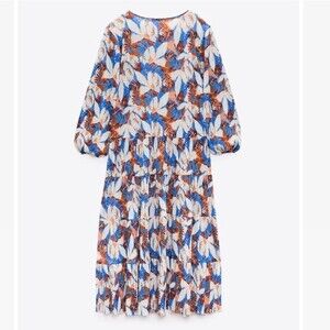 Round neck midi dress with below-the-elbow length sleeves and elastic cuffs.