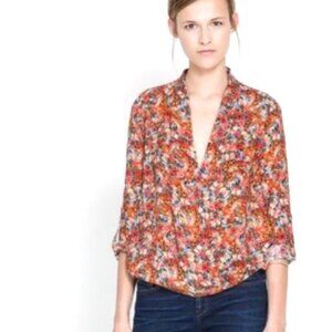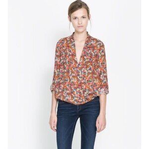 Zara Floral Print Faux Wrap Surplice Blouse Size M EUC