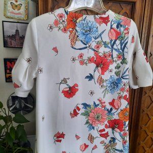Preppy and pretty , Zara brand tunic styled dress with a flattering shift cut. Features a floral print, V-neck and short voluminous flutter sleeves for that extra oomph! AND it has side pockets :-) Perfect for Summer or layer with a denim jacket and boots for winter and special occassions!