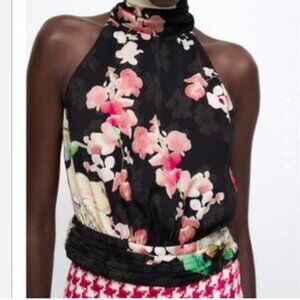 Zara floral print halter neck top with buttons on side sizeM perfect conditions