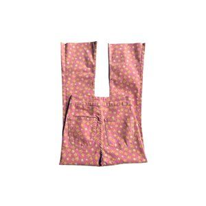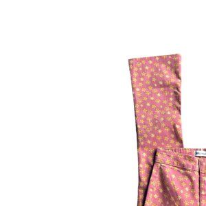 Zara Pink Yellow Floral Print Flat Front High Waisted Zip Hidden Clasp Bar Button Closure Two Back Pockets Kick Flare Crop Stretch Jeans Size 4 - Excellent condition.