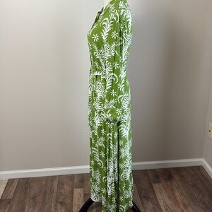 Zara Floral Print Lilou Midi Shirt Dress Belted Tropical Green White Size XS