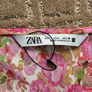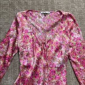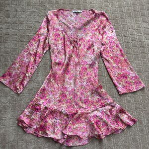 Zara Floral Print Mini Dress Women's L Pink Flounce Hem Lightweight Long Sleeve