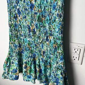 Zara Floral Print Puff Sleeve Smocked Mini Dress Size XS Blogger Favorite Blue