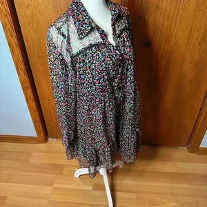 Zara Floral Print Ruffle Mini Dress Long Sleeves Multicolor Size Medium.
