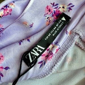 This feminine Zara lilac floral slip dress is a must-have for warm weather and vacation-ready looks. Featuring delicate pink floral prints on a lavender base, it’s styled with spaghetti straps, a soft cowl neckline, and a dramatic open back with adjustable crisscross tie detail. Lightweight and easy to wear, this dress offers a flattering drape and flirty silhouette perfect for day-to-night transitions.