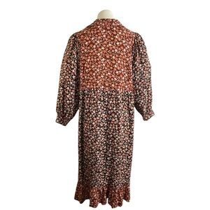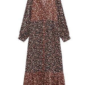 Zara Floral Printed Midi Mixed Pattern Balloon Sleeve Shirt Dress