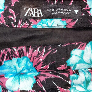 Zara Floral Printed Mini Bubble Skirt Black Blue Pink Women’s Sz XS