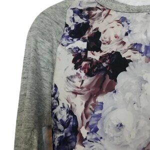 Floral print silky front with sparkly gray cotton back and sleeves. Great pre-loved condition.