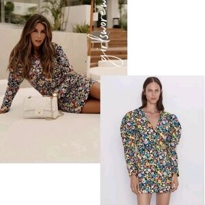Zara Floral Puff Shoulder Mini Dress. Big puff shoulders. Zip back closure. Excellent condition, no stains, holes or wear.