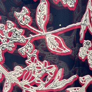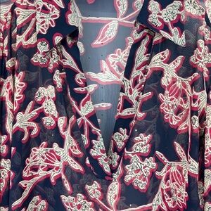 Zara Floral Red & Blue Oversized V Neck Studded Blouse SZ M