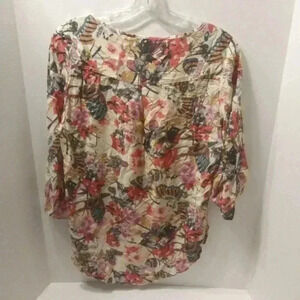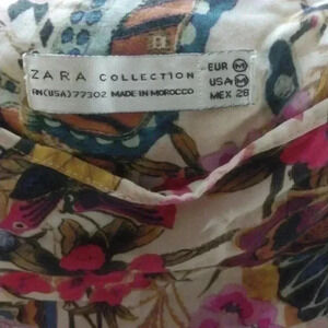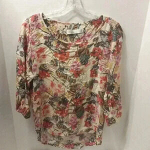 Zara Floral Roll Sleeve Cotton Blend Top Size M