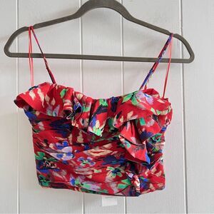 Zara Floral Ruffle Crop Tank Top NWT