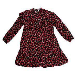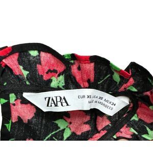 Zara Floral Ruffle Dress Women's Size XS Black Red 100% Cotton Romantic Cottage