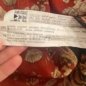 Zara Floral Sheer Long Sleeve Flowy Boho Blouse Smocked Ruffle Neck XL Red Green