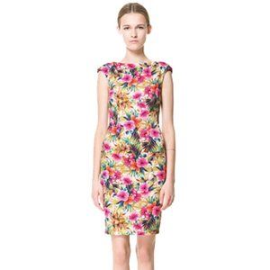 Zara Floral Tropical Print Stretch Pencil Dress S