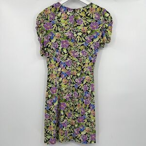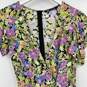 Zara Floral Wrap Mini Dress Short Sleeve Button Side Ruched Green Purple Size XS