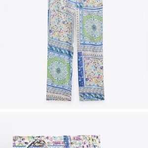 Embrace elegance with this floral print pants. Perfect for any occasion, it features a blend of blue and green hues.