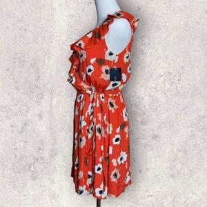Zara Flowing Floral Print Crossover Dress XS Ruffle V-Neck Tunic Mini Orange