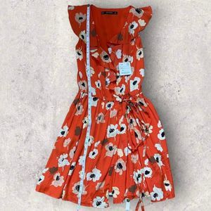 Zara Flowing Floral Print Crossover Dress XS Ruffle V-Neck Tunic Mini Orange NWT