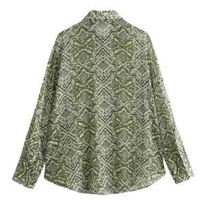 Zara Flowy Lightweight Green and White Abstract Print Long Sleeve Blouse