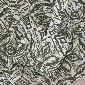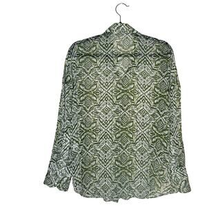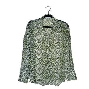 Zara Flowy Lightweight Green and White Abstract Print Long Sleeve Blouse Size S