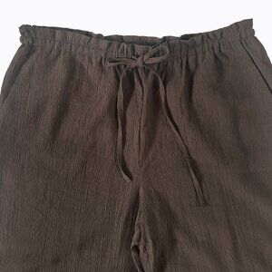 Zara Flowy Pants SzXS/S Textured Weave Chocolate Brown Boho Beach Hippie Coastal