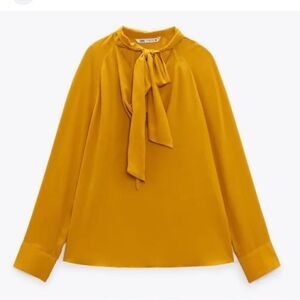 Zara Flowy Yellow Top/Blouse with Bow, Pullover styling.