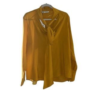 Zara Flowy Yellow Top/Blouse with Bow(Size Large)