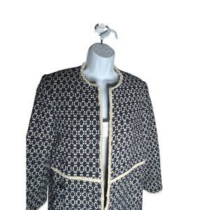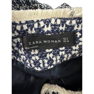 Zara Frayed printed tweed boucle coat blue ecru size Medium Long jacket blazer