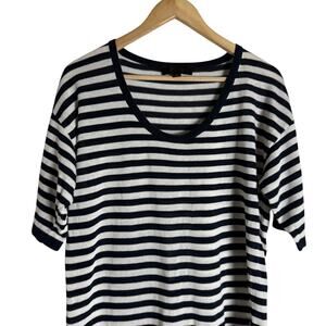Zara French Striped Scoop Neck Short Sleeve Oversized Linen Blend Tee Size Small