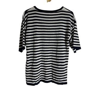 Zara French Striped Scoop Neck Short Sleeve Oversized Linen Blend Tee Size Small