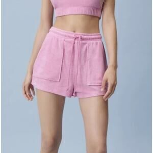 NWT Zara French Terry Terrycloth Drawstring Shorts in Pink