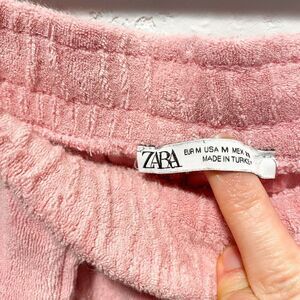 Zara French Terry Terrycloth Drawstring Shorts in Pink Women's Medium High Waist