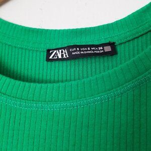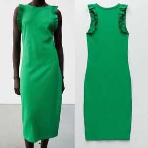 Zara Frill Ruffle Ribbed Knit Midi Dress Bodycon Kelly Green Size S 0962/629