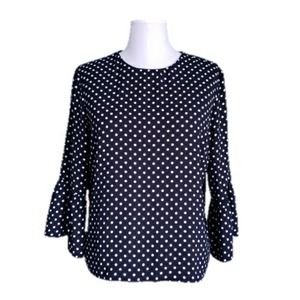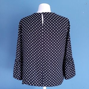 This bell sleeve top features 3/4 leather sleeves and a keyhole with button closure on the back.