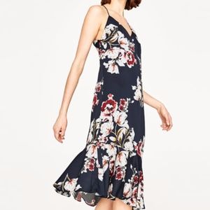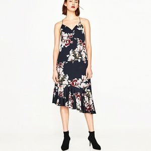 Zara Frilled Camisole Floral Slip Black dress S NWT BLOGGER'S FAVORITE