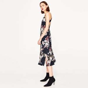Brand new with tag attached, Zara floral print dress with pretty strap detail. Half lining inside the dress. SOLD OUT! 4th photo is of actual dress. It's line and has pretty side button detail