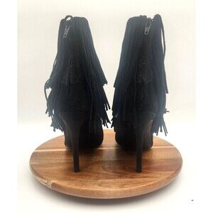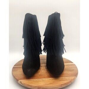 Zara Fringe Ankle Booties Women's 8.5M Black Suede Back Zip 4 Inch Heels Western