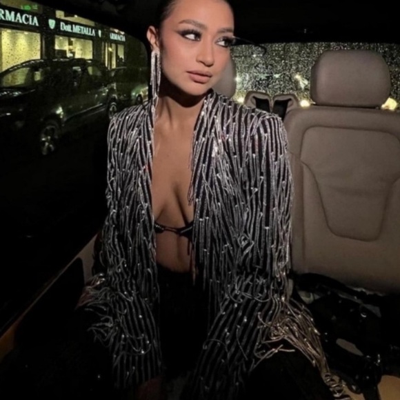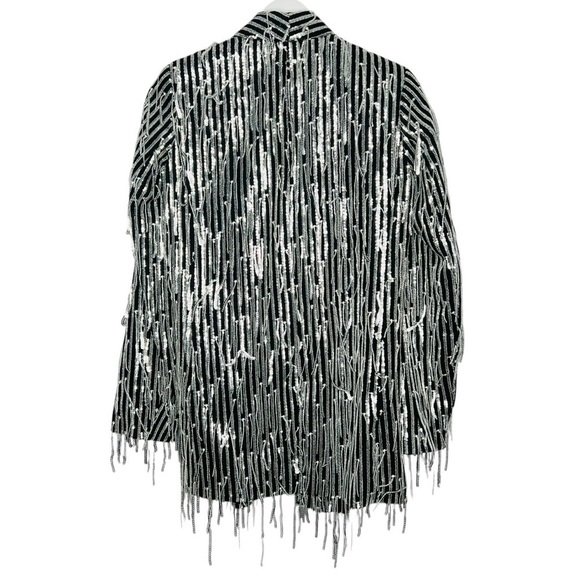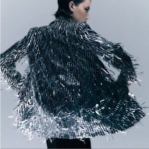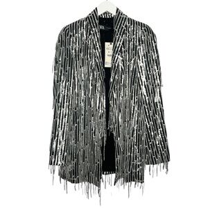 Zara Fringe Sequined Blazer Silver Size XS NEW