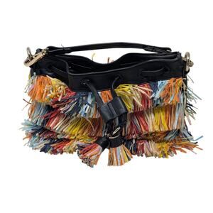 Zara Fringed Mini Bucket Bag Multicolored Lined Festival Indie Boho Maximalist